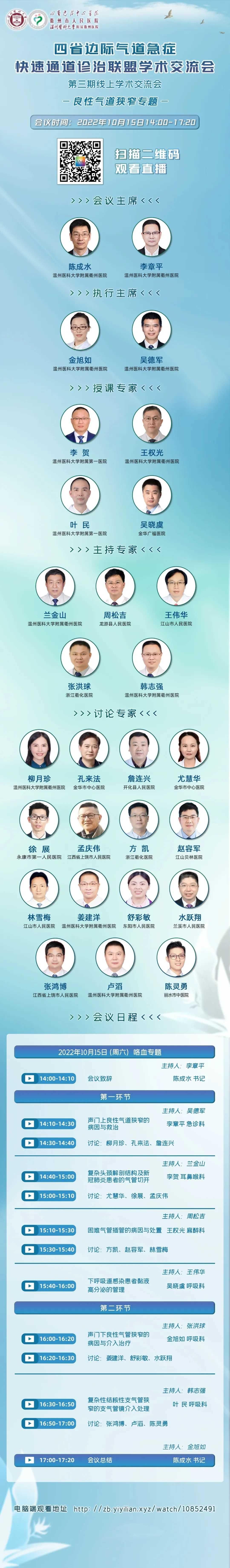 10月15日(本周六)下午14:00,“四省边际气道急症快速通道诊治联盟”第三次线上学术交流活动来啦~
